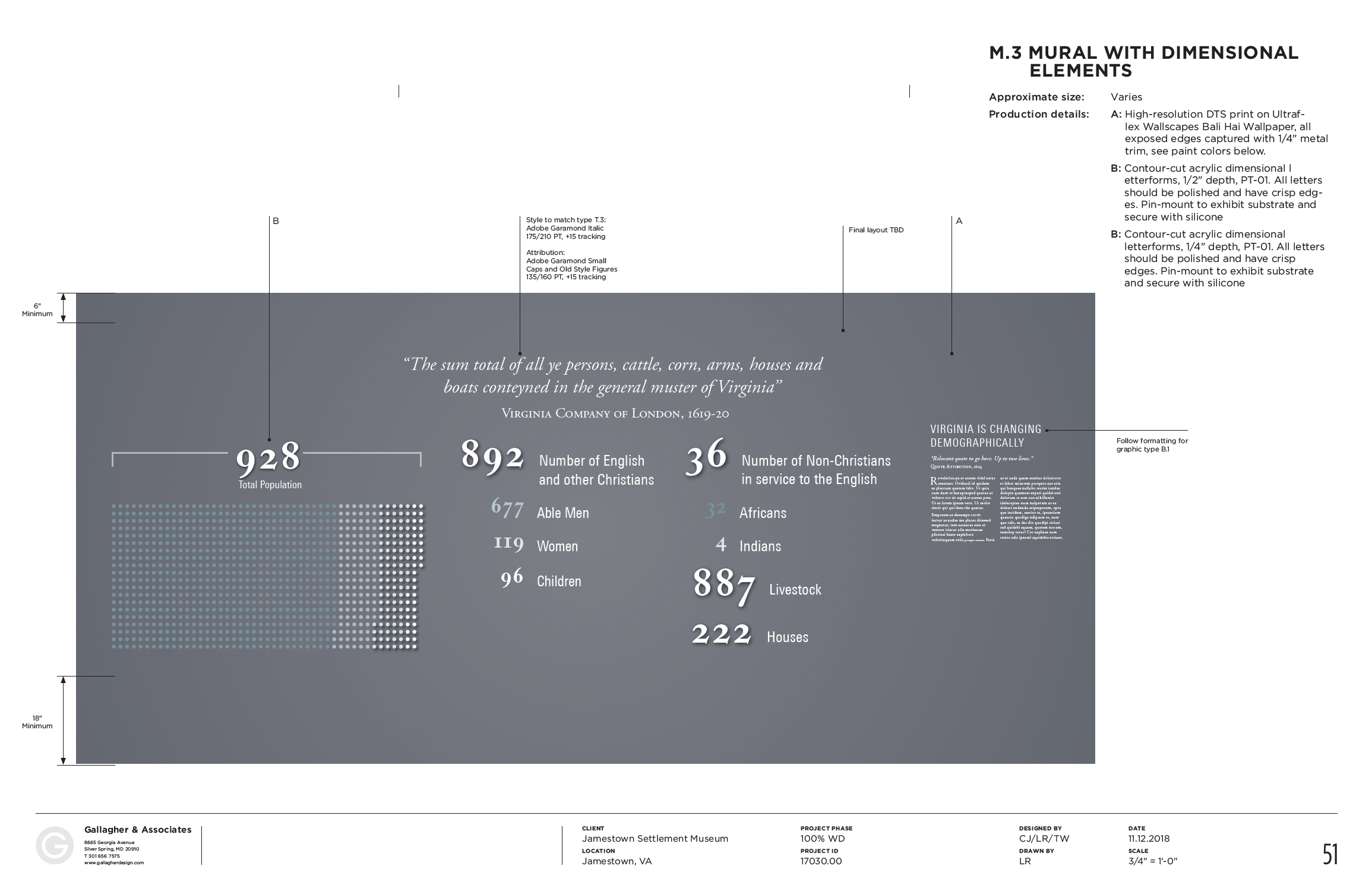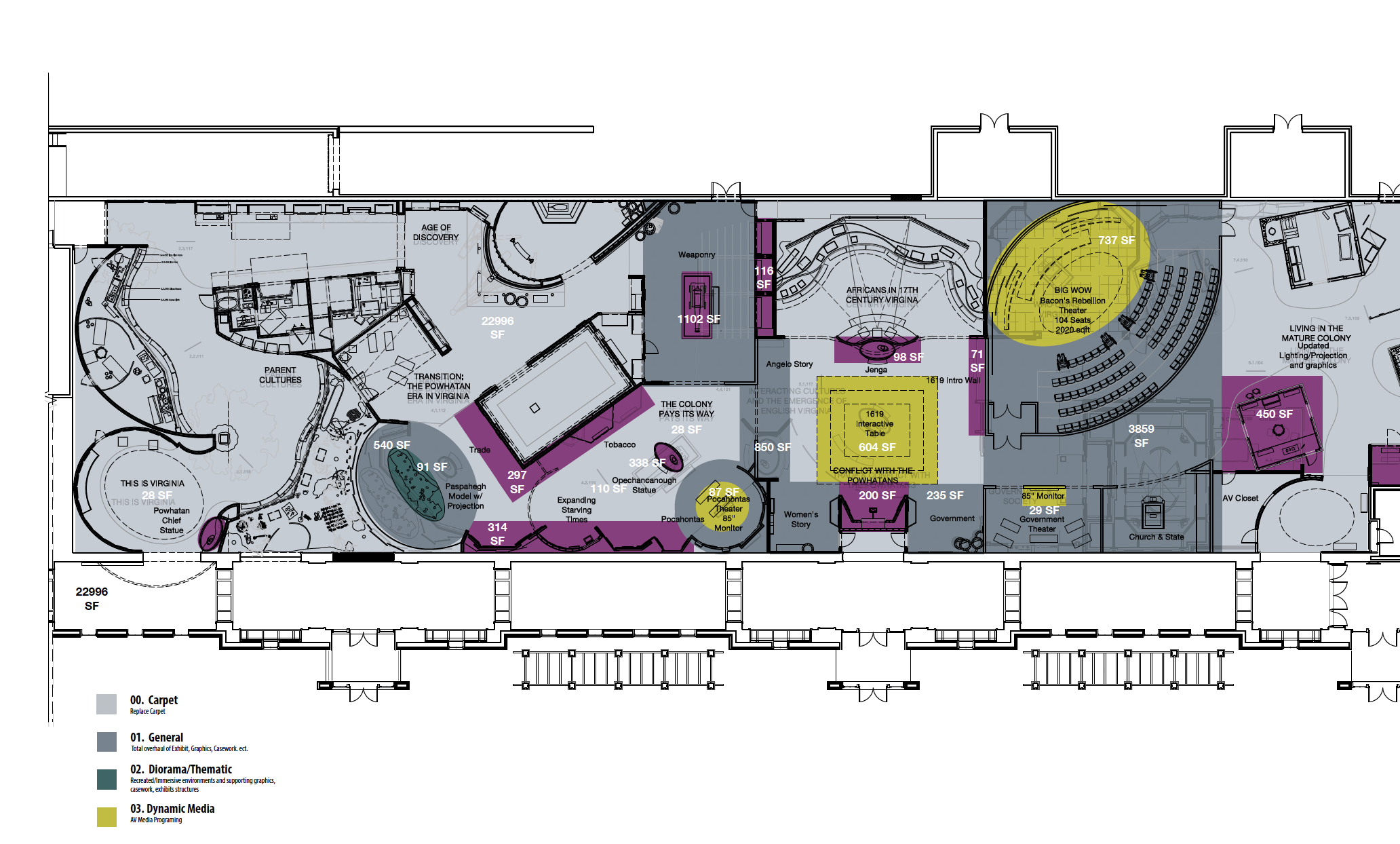 Completed as Project Executive and Creative Lead with G&A Strategy & Design. Liza led the design team in partnership with the Jamestown curatorial team to develop the exhibit refresh concepts. She led the bid and construction administration process, and partnered with the architects, DLR, who supported in creating a 4D theater with media production partners Cortina.